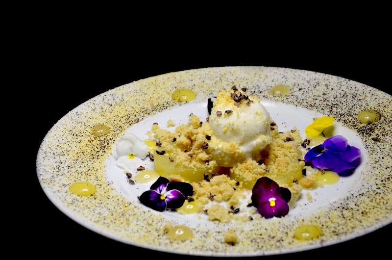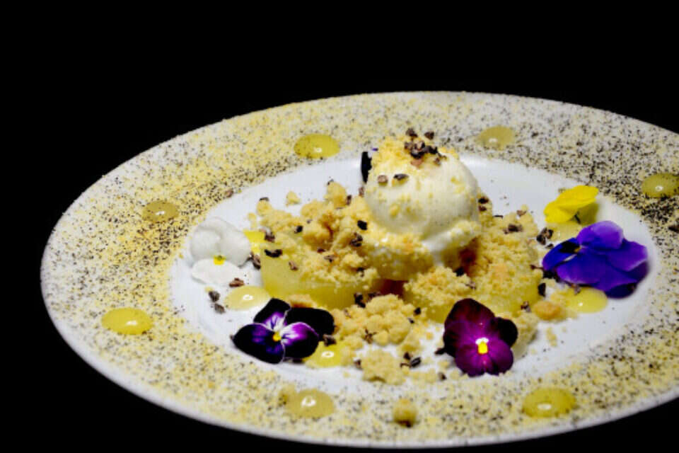 גלידה ממצות על קרמבל תפוחים וטחינה