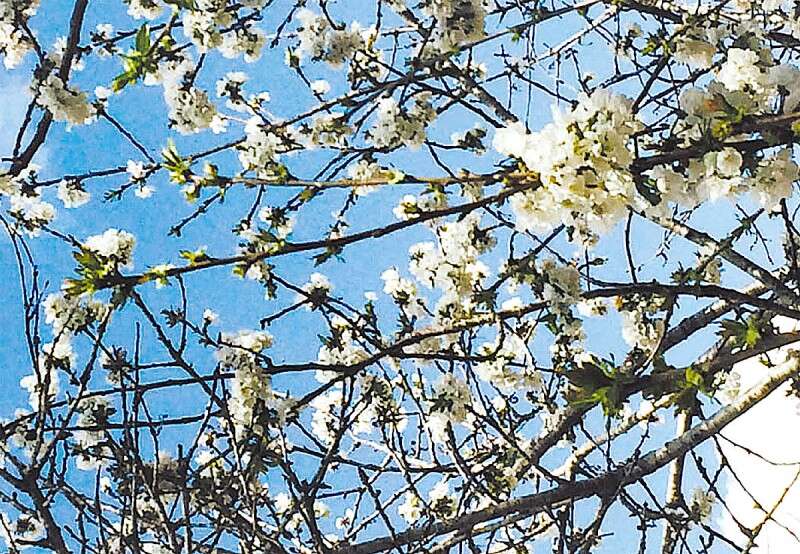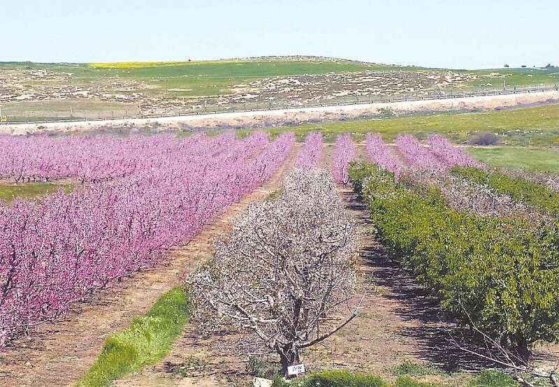 מה פורח: עצי אפרסק, נקטרינות ודובדבנים.