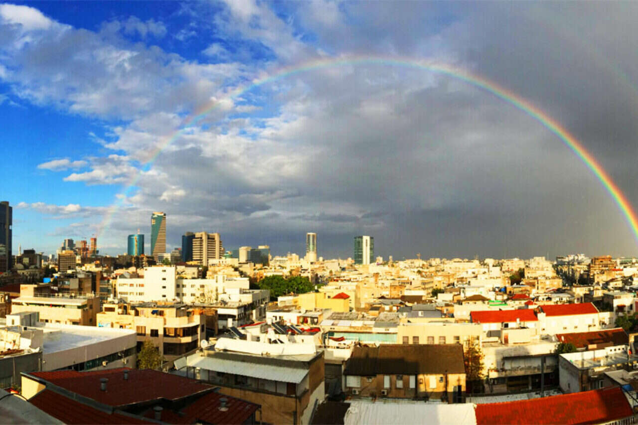 קשת מרהיבה, אתמול בתל אביב // צילום: ירון עוגן // קשת מרהיבה, אתמול בתל אביב
