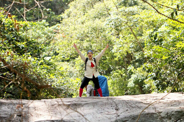 פתאום אני מתחילה לשמוע קולות של ילדים טובלים בנהר. משמע, אנחנו ממש קרובים לסיום. אני מתמלאת אנרגיה מחודשת. המסלול נהיה יותר מישורי, העצים כבר לא מכסים את השמיים. אני יכולה לראות את הרקיע. השעה 4 אחר הצהריים, ואנחנו כמעט מסיימים תשע שעות של ירידה תלולה. אני קולטת בזווית העין את טואי, המדריך התאילנדי, מחכה לנו בנקודת האיסוף, צועקת הללויה ומתחבקת עם כולם, אבל לא קרוב מדי, כי הם נורא מזיעים.