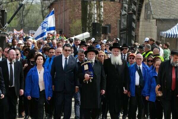 מזג אוויר אביבי האיר פניו לצועדים, שעשו את מסלול המוות בן שני הקילומטרים מאושוויץ 1 לאושוויץ 2- בירקנאו. הדרך, שראתה יותר מתים מכל דרך בעולם - 1.1 מיליון איש, הייתה עדה עתה לים של דגלי ישראל שנשאו, עטפו והתנופפו מעל ראשי הצועדים. בראש הצועדים היו הרב לאו ובנו הבכור, הרב הראשי לבריטניה, שרת החינוך האוסטרית גבריאל אוסק ושגריר ארה״ב למועצת זכויות האדם של האו״ם, קית' הרפר.
