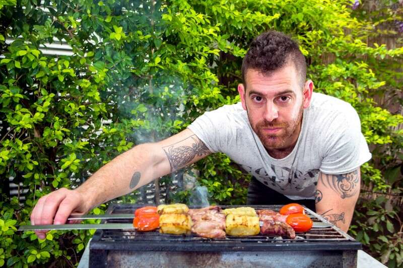 עם שיפוד נתח קצבים וחצילים מטוגנים (מתכון בהמשך הכתבה). "אני נכנס לפעמים לדיכאונות" // צילום: יהושע יוסף