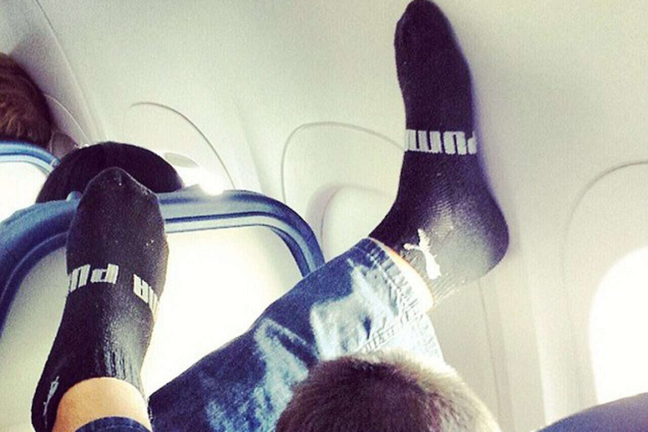 נוסעת שהרגישה נוח מדי וחשבה שזה הגיוני להכניס את כפות הרגליים שלה בין המושבים