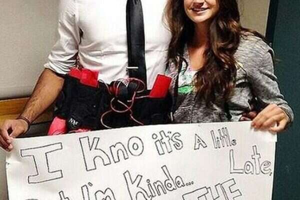 ההזמנה המוזרה: צעיר חגר למותניו חגורת נפץ מזויפת, על מנת לזמין את בת כיתתו להתלוות אליו לנשף הסיום בביה"ס.