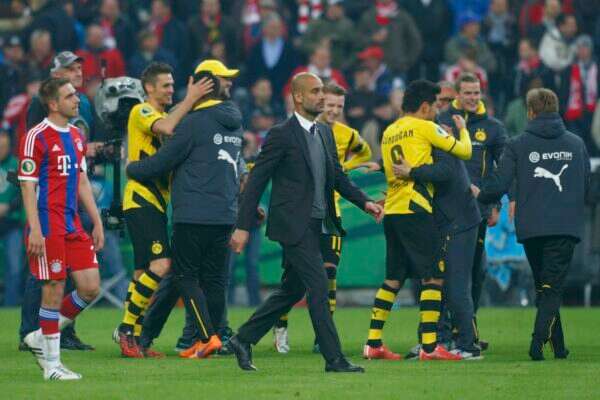 בבאיירן מינכן עדיין מתאוששים מההפסד הביתי 2:0 בדו קרב פנדלים (1:1 בתום 120 הדקות) לבורוסיה דורטמונד שהדיח אותם מהגביע הגרמני. צ'אבי אלונסו, פיליפ לאם והשוער אוליבר נוייר הפכו לגיבורים הטראגיים לאחר שהחמיצו מהנקודה הלבנה.