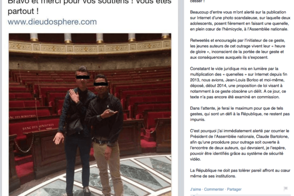 חבר הפרלמנט הצרפתי יהודי מאיר חביב פנה לנשיא האסיפה הלאומית בצרפת, קלוד ברטולון, בדרישה לפעול נגד השניים. "הפרלמנט הוא לב האומה הצרפתית, והמעשה מהווה פגיעה חמורה ביותר ברפובליקה" אמר חביב והוסיף כי האירוע מחזק את הצורך בהוצאת ה"קנל" מחוץ לחוק בצרפת.