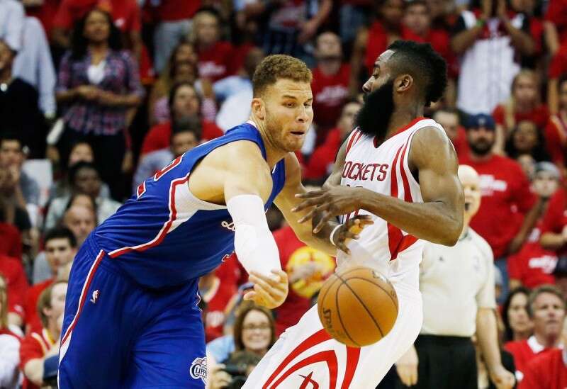 ג'יימס הארדן ובלייק גריפין בדיבור צפוף // צילום: אי.אף פי