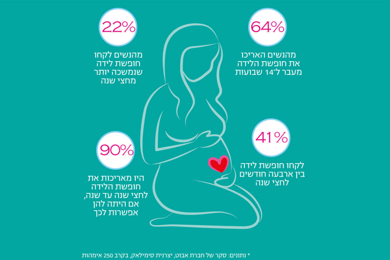 מסקר שערכה חברת אבוט, יצרנית סימילאק, בקרב 250 אימהות טריות בשלבים שונים של חופשת הלידה, עולה כי 64% מהנשים האריכו את חופשת הלידה מעבר למינימום של 14 השבועות הקבוע בחוק, רובן (41%) לקחו חופשת לידה של ארבעה עד שישה חודשים. כ־22% מהנשים לקחו חופשת לידה שנמשכה יותר מחצי שנה, ורק 2.4% קיצרו את חופשת הלידה לחודשיים או פחות. אף אחת מהנשים לא העבירה את זכות חופש הלידה לאביו של התינוק.