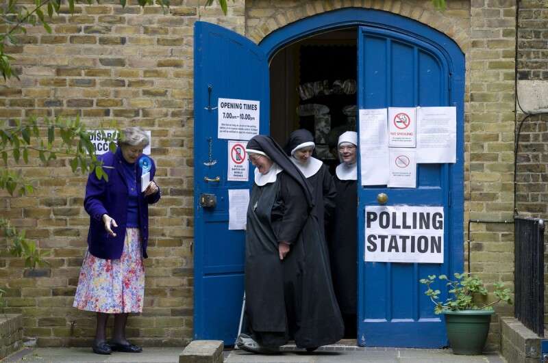 נזירות יוצאות מקלפי בלונדון // צילום: אי.אף.פי