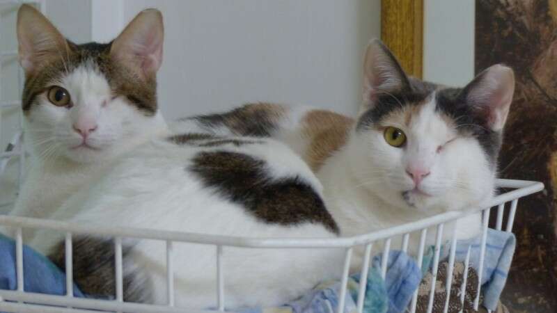 אומה ופומה - אומה ופומה נאספו בהפרש של יומיים ממקומות שונים, אחת היתה עם עין שפוכה החוצה והשנייה עם עין בגודל עצום, הן היו בסה"כ בנות חודש וחצי. שתיהן עברו עקירת עין והתאוששו ביחד, והעין האחת לא מפריעה להן לתפקד כרגיל. אומה ופומה נהיו אחיות תוך יומיים, ישנות מכורבלות אחת בשנייה ולא מחמיצות מקלחת ערב של ליקוקים הדדיים. לפעמים הן נראות כמו חתול אחד. הן מלאכיות, עדינות ומתוקות, מעוקרות ומחוסנות וישמחו להימסר לבית אחד.