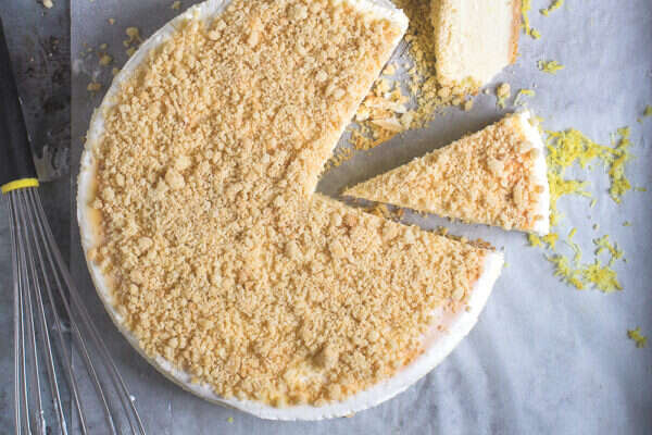 עוגת גבינה עגולה משפחתית עם קצפת וגרידת תפוז