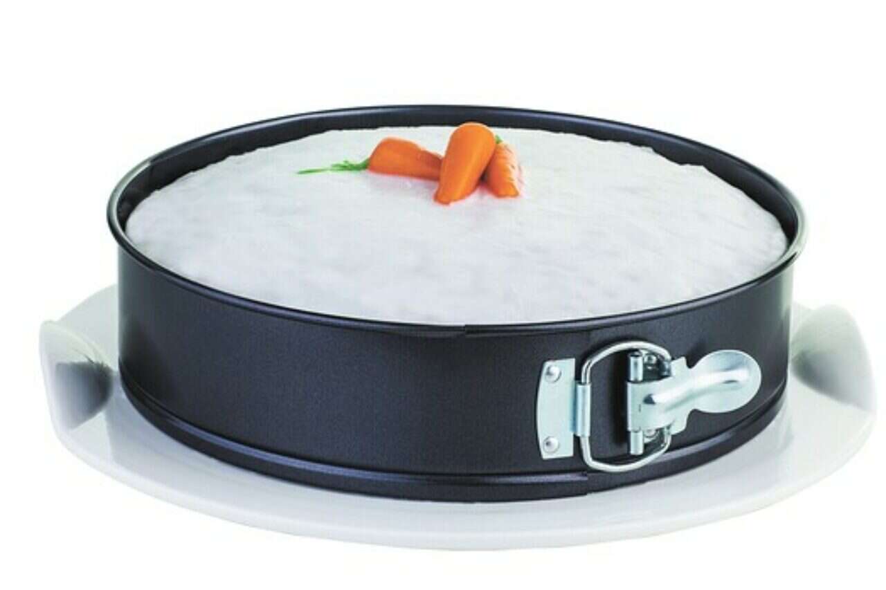 סט של תבנית קפיץ עגולה ומגש פורצלן לאפייה ולהגשה מסידרת ארקוסטיל ומיקי שמו. ציפוי נון סטיק ובסיס שהוא מגש מפורצלן בצבע לבן שאפשר להכניסו לתנור עם התבנית ולאחר שהעוגה מוכנה - להגיש היישר לשולחן. ניסינו והתבנית מעולה. היא נוחה לשימוש והעוגה לא נדבקה. ההגשה לשולחן אלגנטית ויפה
