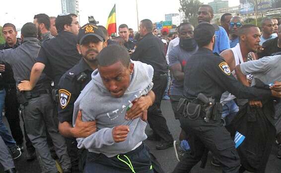 מאות מבני העדה האתיופית הפגינו הערבבאזור קניון עזריאלי בתל אביב. כוחות גדולים של משטרה הגיעו למקום וניסו למנוע מהמפגינים לחסום כבישים. למרות היערכות המשטרה הצליחו המפגינים לרדת אל הכביש והם חסמו את רחוב בגין. בתחילת ההפגנה לא נרשמו הפרות סדר, אך לאחר מכן החלו עימותים בין מפגינים לשוטרים. עד כה נעצרו עשרה ממפגינים. במקביל חסמה המשטרה את הירידה לנתיבי איילון במחלף השלום, על מנת שהמפגינים לא יוכלו לרדת לכביש.