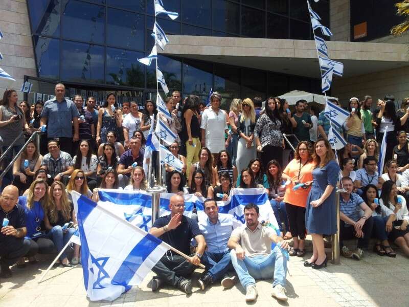 עובדי פרטנר מחוף לבנייני החברה // צילום: פרטנר