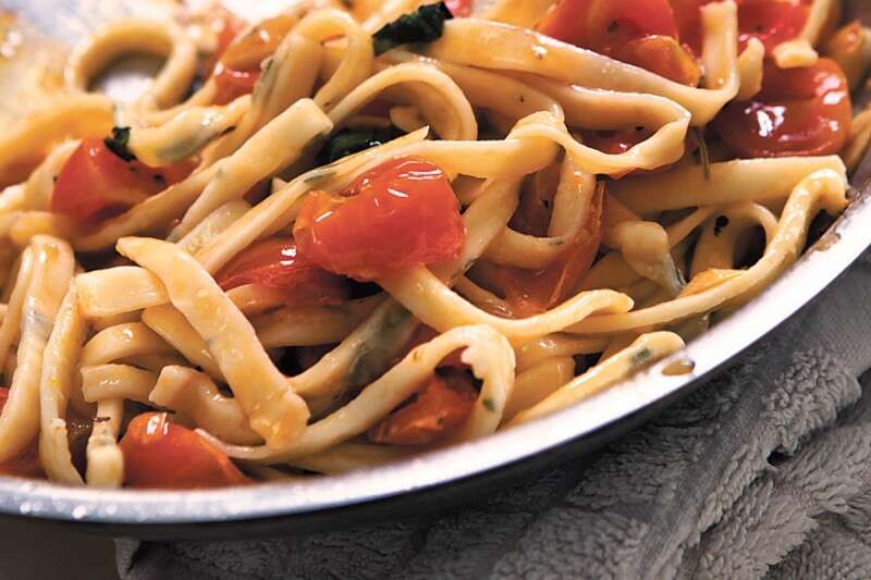 פסטה ברוטב עגבניות. מייבשים את רצועות הפסטה על מגבת מטבח או מתלה // צילום: איתיאל ציון
