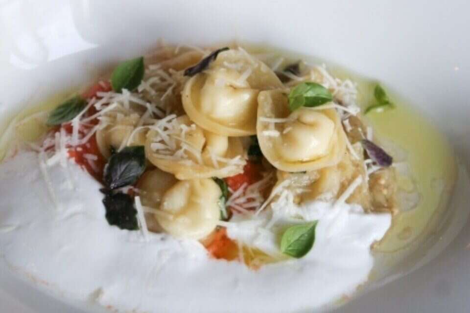 ואז השתנתה לי הארוחה. סינטה כבושה הגיעה על פרוסת לחם קלויה, ומעליה תאנים טריות ושבבי פקורינו. בשר נהדר שננגס בשיניים, תאנים עם מתיקות מנומסת שמתקזזת היטב עם מליחות-חריפות הגבינה. אחר כך יצאה מנת טורטליני ועינגה אותי נורא. הכיסונים האלה, שלפי הסיפורים נוצרו לכבוד הפופיק של ונוס, מולאו בגבינות צאן ורבצו על קולי עגבניות וקרם חציל. יופי של מנה. בצק מעודן אבל מלא טעם, שמקבל מבפנים נשיכה בחמוץ-מלוח בזמן שהעגבניות מלטפות אותו בחוץ ברעננות שלהן. מדי פעם התגנבה למזלג נשיקת עשן של חציל קלוי ונהדר. בבוקר שאחרי, כשניסיתי להוציא איזו מילה מנפתלי, התעכבתי על תיאור המנה. אמרתי לו שהיא עושה הכי הרבה כבוד לפופיק של ונוס. ונפתלי? אצלו שששש, לא מוציא מילה.