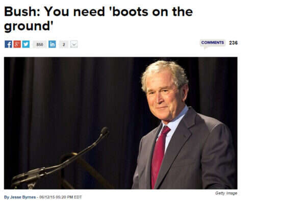 בוש אינו מרבה להתראיין. אמנם הוא נמנע לאורך כל הראיון מלבקר את הנשיא ברק אובאמה מתוך כבוד למוסד הנשיאות, אך ציין כי בזמן המלחמה בעיראק הגיע למסקנה כי הדרך לניצחון היא באמצעות "חיילים בשטח" (boots on the ground). אתר החדשות The Hill הפך ציטוט זה לכותרת בכתבה מרכזית בעמוד הבית שלו, ואף פירש משפט זה כהתנערות מהאסטרטגיה שנוקט הנשיא ברק אובאמה באזור.
