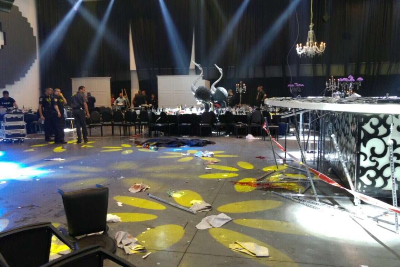 האסון אירע כתוצאה מקריסה של נברשת ענק, שמשמשת כאטרקציה מרכזית בעיצוב האולם – כאשר היא נעה מעלה מטה בעת שתחתיה רוקדים המוזמנים לאירוע. מסיבה שטרם ידועה, הנברשת ניתקה מהתקרה וקרסה במלוא כובדה על בר השתייה והחוגגים ששהו תחתיה.