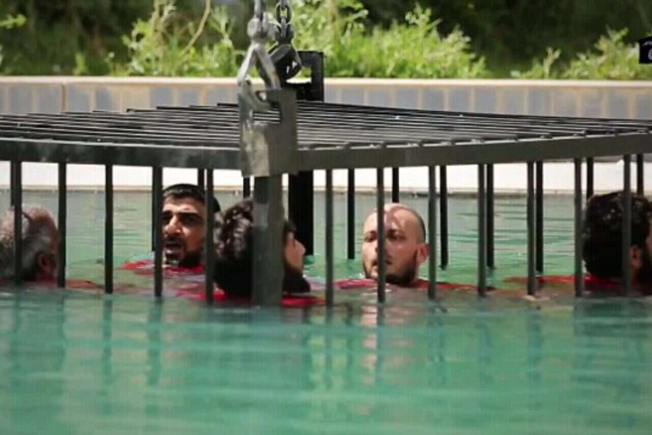 הקבוצה השנייה נקשרה בתוך כלוב ברזל ענקי, שהורד אל תוך בריכת מים עד שהמוצאים להורג חדלו לנשום.