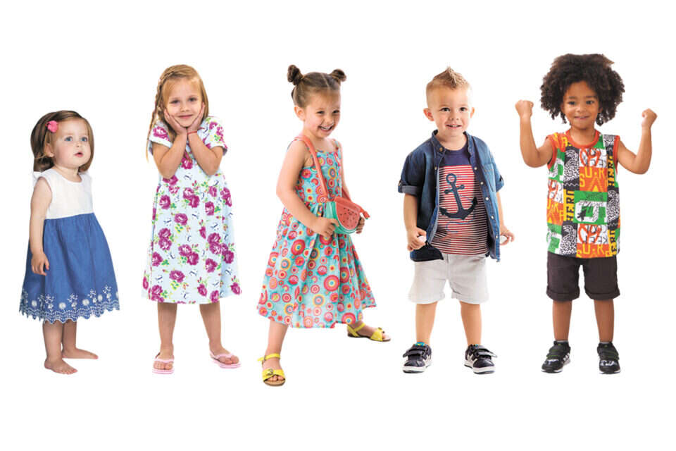 "למשל, קולקציית הבנות מציגה שמלות חגיגיות בגיזרה ישרה או מתנפחת עם תחרות, שמלות רקומות או עם פייטים ושמלות צבעוניות ליומיום עשויות מכותנה או מג'ינס. יש גם אוברולים נוחים וחולצות במגוון הדפסים של פירות טרופיים ופרחים לצד חולצות מיוחדות עם תחרות, פייטים, פרנזים או קשירה למראה אופנתי ומשודרג. קולקציית הבנים כוללת מבחר חולצות טי מסוגננות וצבעוניות, גופיות ומכנסיים תואמים במראה ספורטיבי, חולצות מכופתרות חגיגיות עם דפוסי משבצות או חלקות, חולצות פולו בצבעים קלאסיים בשילוב צבעי ניאון ומבחר מכנסיים קצרים בגיזרת דגמ"ח, ספורטיבי או אלגנטי".
