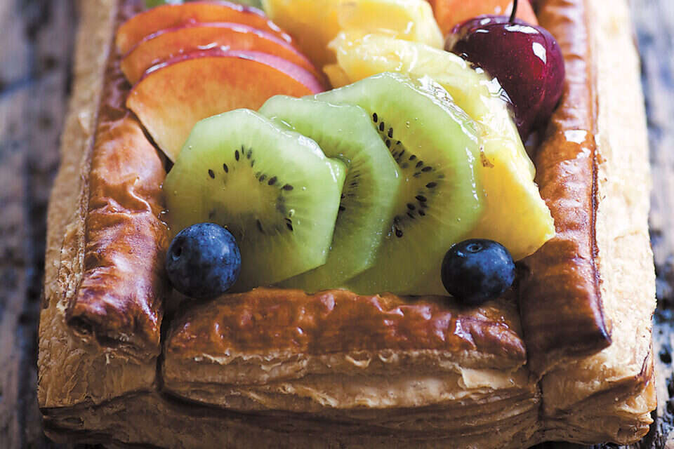 המתכונים השבוע הם שילוב של עוגה ומאפה - שילוב מעניין של בצק עלים עם קרם מתקתק שעליו מונחים פירות קיציים. בזכות הפירות השונים המשולבים בכל אחד מהמתכונים, כל מאפה יוצא שונה לחלוטין בטעמו, בצבעיו ובמרקמים שלו. המאפים מתאימים מאוד לכוס קפה ונהדרים לפיקניק ביום שמשי נעים.