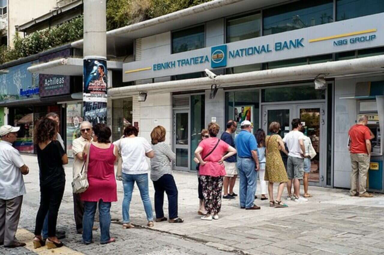 תורי ענק מחוץ לכספומטים ביוון // צילום: GettyImages // תורי ענק מחוץ לכספומטים ביוון