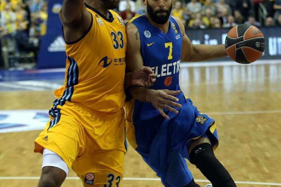 מקלין (משמאל) מול רנדל. פגש את מכבי ארבע פעמים וקלע 14 נק' בממוצע // צילום: אודי ציטיאט