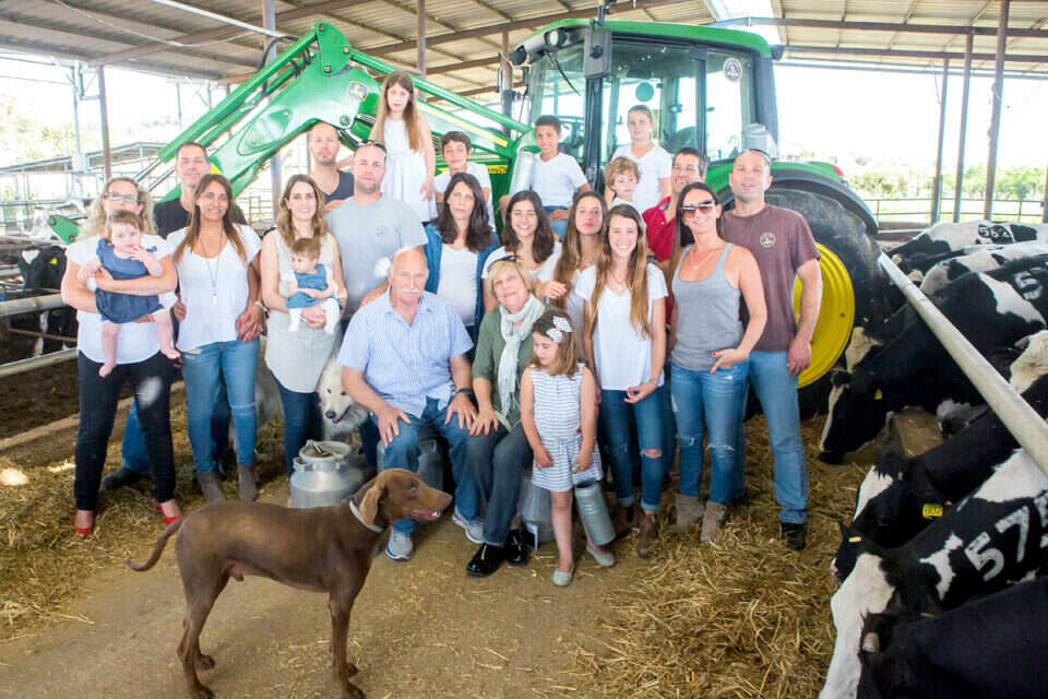 וכשהתקהלו כולם בחצר הרפת לצילום משפחתי, שלמה ורוני, הבנים והכלות ו־12 הנכדים נראו כמו קיבוץ קטן משל עצמו. הסתכלתי בשלמה היושב ביניהם, איש שקט עם שפם, שהדיוקן שלו מוטבע על חלק מגבינות המחלבה, שידע זיעה כל ימיו ורואה ברכה גדולה בעמלו, ובני ביתו המקיפים אותו עכשיו שמים בעיניו בת שחוק.