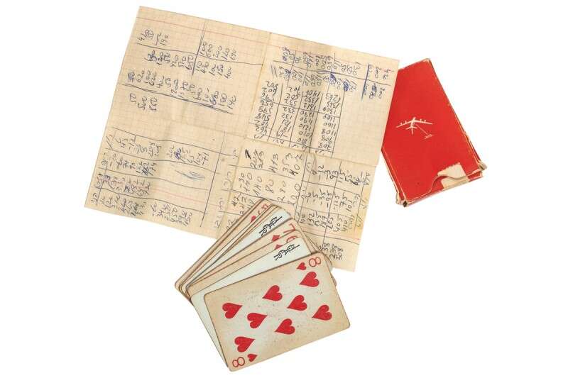 רישומים וחפיסת קלפים שבהם שיחקו החטופים // צילום: אייל טואג, באדיבות ארכיון צה"ל במשרד הביטחון