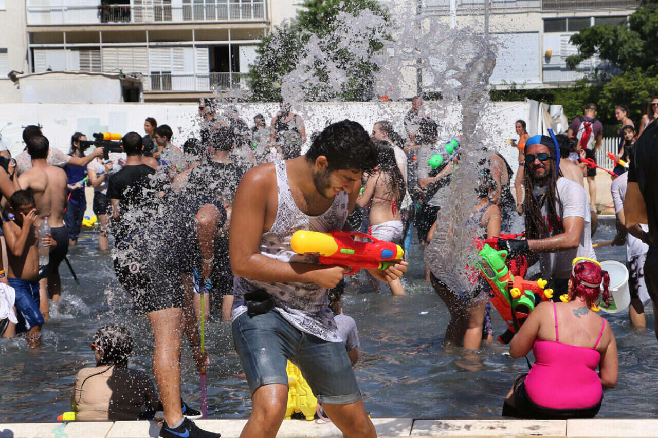 מי שדווקא כן הצליחו להתקרר בסוף השבוע הם כמה עשרות צעירים שערכו מלחמת מים בכיכר הבימה בתל אביב.