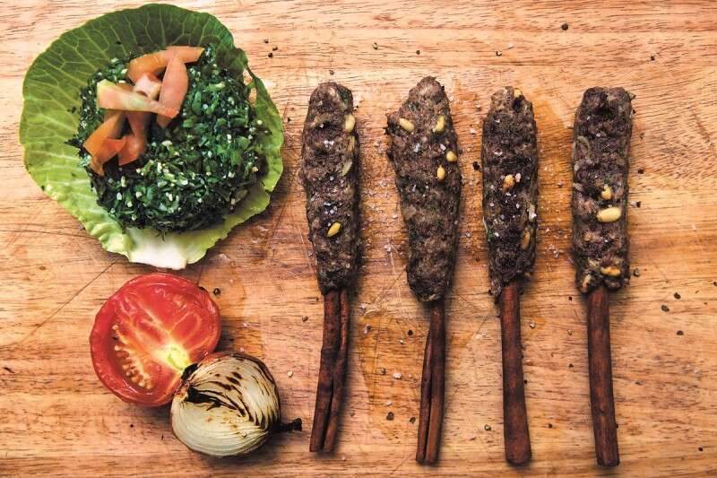 הקבב על מקלות קינמון הידוע של דוחול ספאדי. מקלות הקינמון מביאים איתם בזמן הצלייה ארומה נוספת לתוך הקציצה.