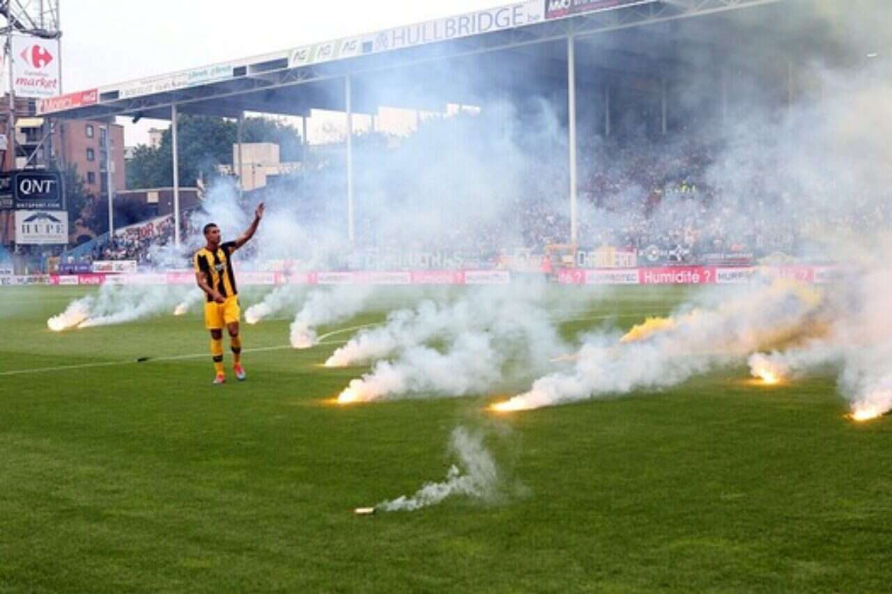 יציע בית"ר ירושלים בוער // צילום: אודי ציטאיט, בלגיה