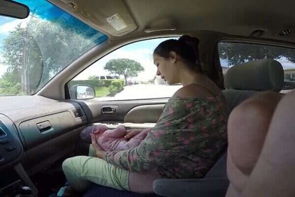 אישה שכרעה ללדת לא הספיקה להגיע לבית החולים וילדה במכונית – כשלצדה נוהג בעלה ואב התינוק, ומצלם את הלידה המרגשת.