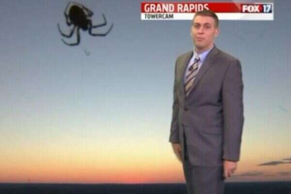 החזאי גארי פרנק, מתחנת הטלוויזיה האמריקנית WXMI, בסך הכול רצה לדווח לצופים את תחזית מזג האוויר במדינת מישיגן. אלא שבאמצע השידור הפתיע אותו עכביש "ענק" שטיפס על עדשת המצלמה ותפס לעצמו זבוב דשן לארוחת הבוקר.