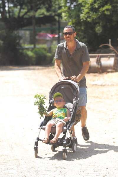 אמיר גוטמן עם הבן רוי וטיולון יויו בספארי // צילום: שוקה כהן