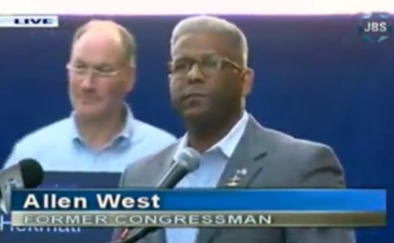 חבר הקונגרס לשעבר, אלן ווסט, נאם נגד הסכם הגרעין. "זה המסר הפשוט שאנחנו צריכים לשלוח לאיראן. כשבאיראן שרים 'מוות לאמריקה' - כל שעלינו לומר הוא 'קודם אתם'". ווסט הוסיף בלהט כי "ארצות הברית לא נכנעת לחבורת כהני דת משוגעים, לובשי גלימות שחורות, שרוצים להשמיד אותנו". חבר הקונגרס לשעבר המשיך ושאל את הקהל "מה זה אומר עלינו, שאנחנו יושבים וחותמים הסכם עם מדינה כמו איראן כדי שתהפוך למעצמה כלכלית, כדי שבעוד 5 עד 8 שנים יוסר אמברגו הנשק של האו"ם והם יהפכו למעצמה צבאית - ואז בעוד 10 עד 15 שנים הם יהפכו למעצמה גרעינית!"