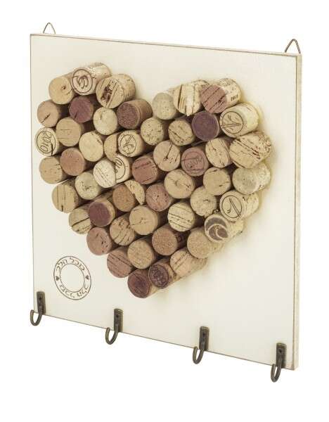 2. מתלה מפתחות בצורת לב, מפקקים, עליו תוכלו לשים גם פתקי אהבה זה לזו ולזכור בצאתם ובחזרתכם את שאהבה נפשכם. 135 שקלים. להשיג בחנות "תפיסת עולם" של המועצה לישראל יפה במרכז המבקרים , פארק הירקון ת"א. צילום: אודי דגן.