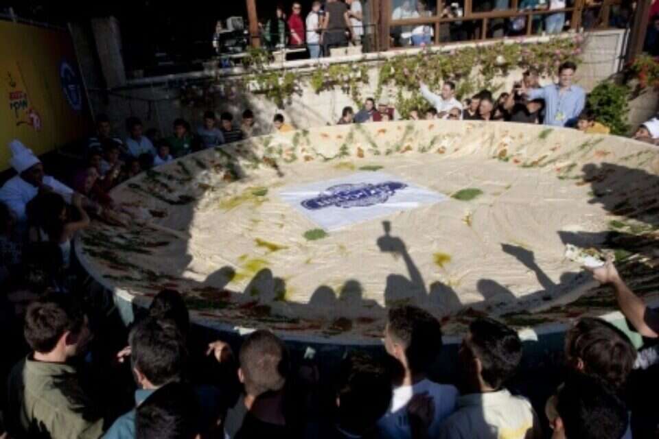 כשנציג גינס, ג'ון ברוקבנק, הכריז שלשום כי צלחת החומוס של מסעדת אבו גוש, במשקל של יותר מ-4 טונות, היא הגדולה בעולם ותיכנס לספר השיאים העולמי, הופרחו לאוויר מאות בלונים כחולים ולבנים ואלפי הנוכחים מחאו כפיים. חלקם אפילו יצאו במחולות ברחוב הראשי של הכפר הפסטורלי שבמבואות ירושלים. יוזם הרעיון, איש העסקים ג'אודת איברהים, הסתובב בחולצה לבנה ועניבה כחתן ביום כלולותיו. אם להודות על האמת, כשג'אודת סיפר לי בסוף אוקטובר על כוונתו לשבור את שיא גינס בחומוס, התקשיתי להאמין לו. הייתי משוכנע שג'אודת, בעל החושים החדים ליחסי ציבור, רוצה "לגנוב" עוד כותרת בעיתון. אבל הכל עבד על פי תוכנית שנקבעה מראש. במרכז חצר המסעדה הוצבה צלחת הלוויין הענקית שהובאה מנווה אילן, ולתוכה שפכו 50 שפים מאבו גוש 2,500 ק"ג גרגירי חומוס, 1,500 ק"ג טחינה, 15 ק"ג שום ו-50 ק"ג לימון. לכבוד הקהל הרב שהגיע, הוכנו גם 10,000 פיתות חמות ועלותו של האירוע כולו הגיעה ליותר ממיליון שקלים שאותם השקיע ג'אודת. את נאום הניצחון נשא ג'אודת בערבית, אנגלית ועברית. הוא הודה שהוא נרגש, וסיפר שהוא גאה בכפר הקטן שבו נולד ואשר בו חיים כ-8,000 תושבים בלבד. ג'אודת לא התגרה בלבנונים שהחזיקו עד כה בשיא (עם צלחת חומוס במשקל 2 טונות), אלא השמיע דברי פיוס: "בלבנון כבר מכריזים בתקשורת שעכשיו הם ישברו את השיא שלנו ולא יוותרו. אני רוצה לומר להם שאשמח לעשות את הצלחת הבאה ביחד איתם, במשקל של 10 טונות חומוס". עשרות צוותי טלוויזיה מכל העולם הגיעו שלשום לאבו גוש כדי להנציח את האירוע. הכביש הראשי החוצה את הכפר נסגר כבר בשעות הבוקר. ג'אודת היה לא רק היוזם והמממן, אלא גם המפיק. הוא דאג לתוכנית אמנותית שבמסגרתה הופיעה, בין היתר, מרים טוקאן (שהשתתפה ב"כוכב נולד") ואת האירוע כולו הנחה שדרן הספורט זוהיר בהלול. בתום הטקס הרשמי, שבו נכחו הח"כים צחי הנגבי וזאב בוים (קדימה) ואיש העסקים נוחי דנקנר, זכו הנוכחים לנגב חומוס מהצלחת הזוכה ולשתות לימונדה, חינם אין כסף. "אני מקווה", אמר ג'אודת, "שהמלחמה היחידה בינינו לבין הלבנונים תהיה על חומוס. אינשאללה".