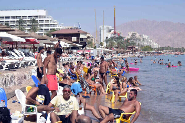 בחוף ה"ניין ביץ'" באילת מצאו דרך להתמודד עם עומס החום הכבד, וכשהטמפרטורה בצהריים נסקה ל־47 מעלות, פיזרו מפעילי החוף בין מיטות השיזוף בחוף הררי קרח.