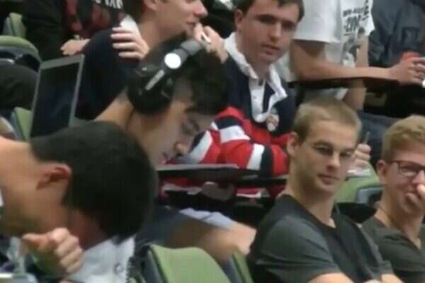 צפו: במהלך שיעור לצד מאות סטודנטים, גילה צעיר כי הסרט הכחול בו הוא צופה במחשב הנייד, הפך לנחלת הכלל