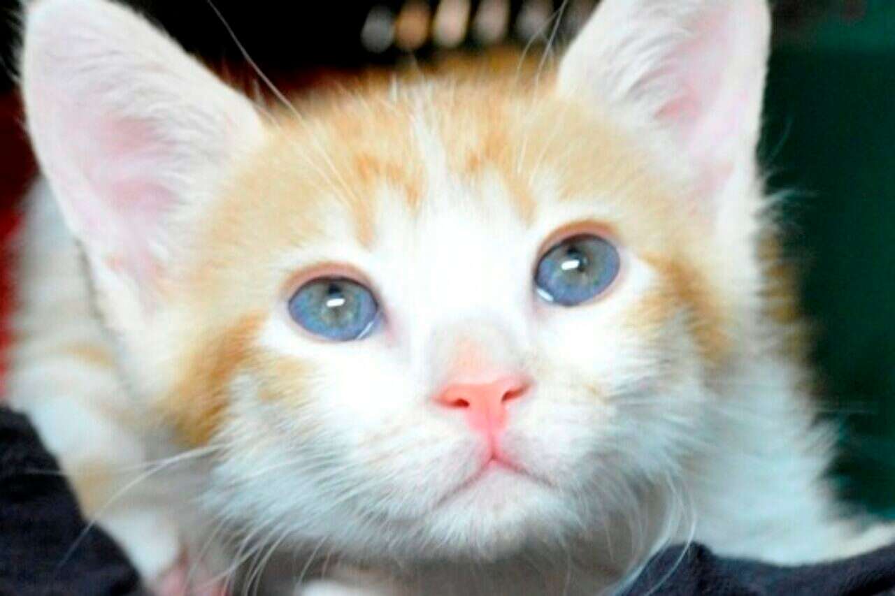משמיש: זכר קטנטן בצבע ג'ינג'י-לבן, בן חודש עם עיניים מקסימות.