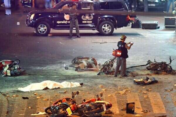 הרשויות בתאילנד עדיין בודקות מי עומד מאחורי אופנוע תופת שהתפוצץ היום (שני) ליד מרכז הקניות הפופולארי MBK, בבירת תאילנד, בנגקוק. על פי דיווחים, לפחות 16 בני אדם נהרגו ועשרות נפצעו. במניין ההרוגים ישנם גם אזרחים זרים. שר הביטחון התאילנדי, פראוויט פונגסוואן, אמר כי הפיצוץ נעשה במטרה לפגוע בתיירות.