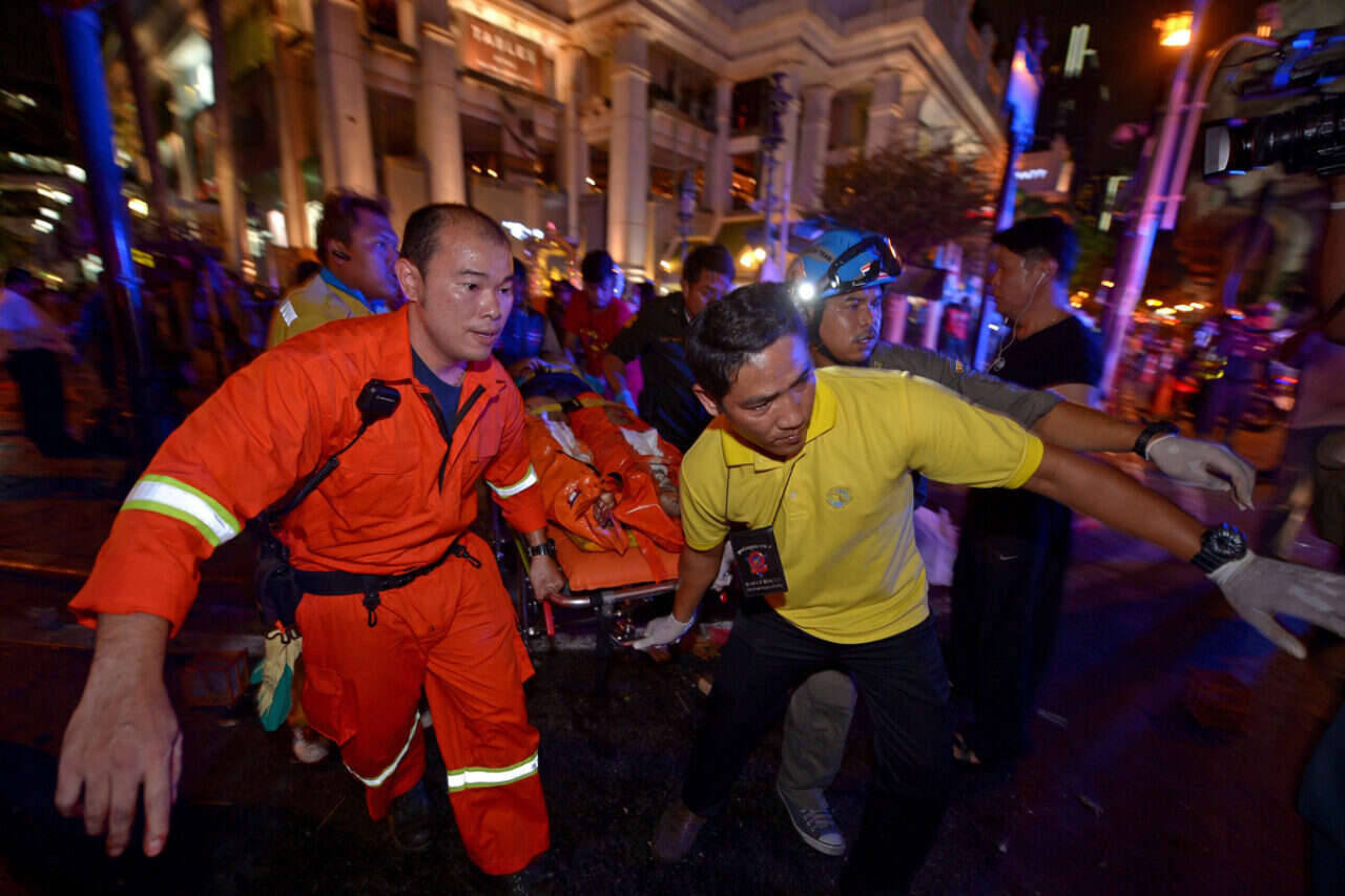 מארקו קנינגהאם, חובש ניו זילנדי העובד עם שירות האמבולנסים בבנגקוק, סיפר כי הפיצוץ יצר מכתש בקוטר שני מטרים. "הזירה נראתה כמו שוק בשר", תיאר, "היו גופות בכל מקום, חלקן מרוטשות לגמרי".