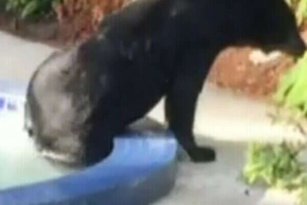 בני הזוג הקנדים דניס וטוני דיארינג נאלצו לחלוק את הבריכה והג'קוזי שבחצר ביתם שבונקובר עם אורח לא קרוא – ומפחיד מאוד – דב שחור.