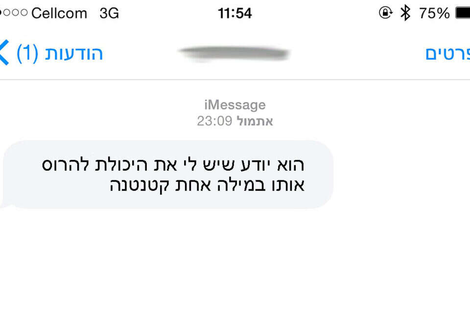 עוד היא כתבה במסרונים: "אני זוכרת שעשיתי לו הפתעה וסגרתי לו הפתעה עם חברים והוא עשה לי ברז....אין בעיה, אגב תמסור לו שממחר יפסיק לישון בשקט...מה החיים שלו מוחזקים בידיים שלי. אתה יודע שאין לי מעצורים בדברים האלה, אתה יודע טוב מאוד למה, עשיתי גם טוב בחיים, אמרתי לך שיהיה מספיק גבר לעמוד מולי. תגיד לו שיענה לטלפון כמו ילד בן 18. אני מוכנה לסגור איתו את העניינים ביפה". בהמשך אמר החשוד בבית המשפט כי המתלוננת כתבה לו שתיכף השוטרים יבואו לעצור אותו על זה שניסה לאנוס אותה ולעל כך שהיא מאיימת עליו.