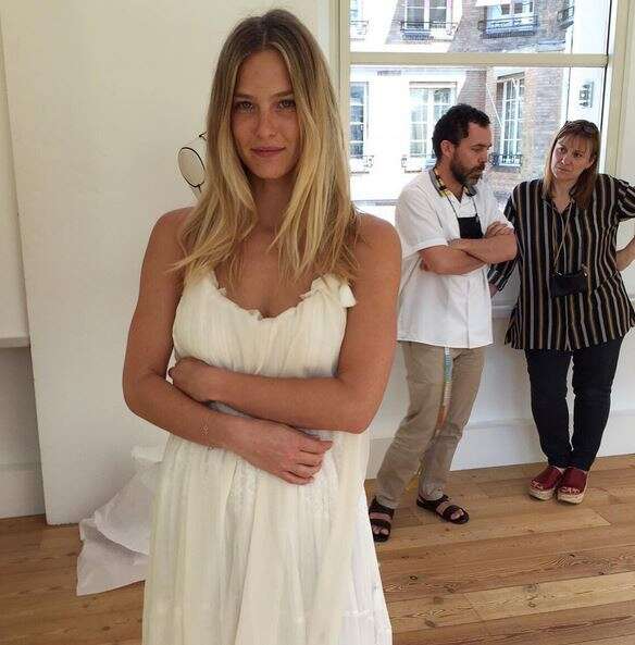 הסופר מודל העלתה היום תמונה לאינסטגרם שלה בה היא נראית חובקת שמלה לבנה בשלבי הכנה, עם הכיתוב "עבור יומי המיוחד ביקשתי מהמעצבת המוכשרת קלייר ווייט קלר לעצב את שמלתי". התיוגים המלווים שייכים למעצבת ולבית האופנה. ווייט קלר היא המעצבת הראשית של Chloe’ החל משנת 2011, והיא נודעת בחיבתה הגדולה לצלליות רחבות של בוהו-שיק סבנטיז חלומי ומתנפנף.