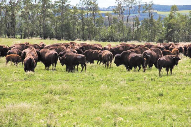 אנחנו מבקרים גם בחוות ביזונים, שבשרם נחשב כאן למעדן. הביזון הוא בהמה גדולה החיה בתנאים טבעיים בלבד. החווה היא סוג של ספארי רחב ידיים, מרופד בכרי עשב ירוק מאופק לאופק. עד הגעתם לפס הייצור, נראה שהביזונים חיים כאן לא רע. הם חופשיים לרעות בשטח הפתוח ורק רכב השטח של זוג הבוקרים הצעירים המארחים אותנו, מפריע את מנוחתם.