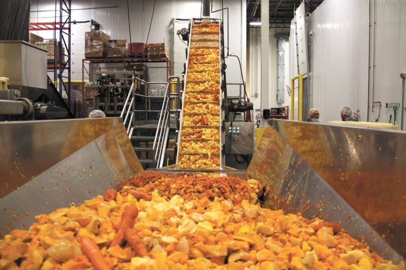 בדרך לבלנדר. מסוע לירקות ופירות לפני המשלוח למטבחי צ'מפיון פט־פוד