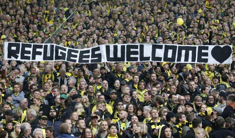 אוהדי דורטמונד מביעית את דעתם על סוגיית הפליטים // צילום: אי.פי