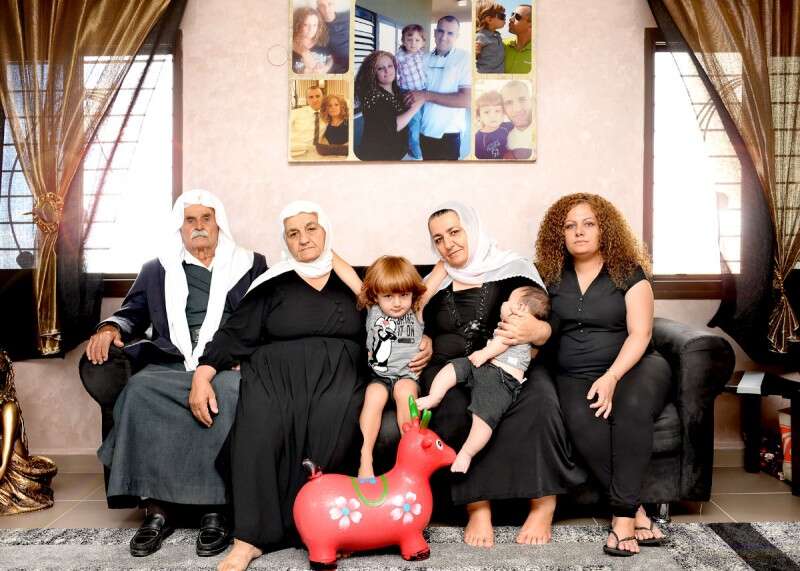 מימין: דרין, אמה סמיה עם אמיר וג'דעאן הקטן, והוריו של ג'דעאן האב - ליא וסעיד // צילום: אפרת אשל